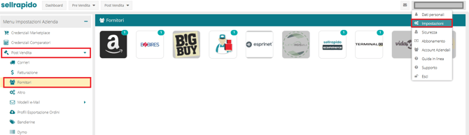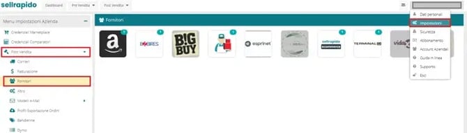 1. Vai su Impostazioni > Post Vendita > Fornitori > Eprice